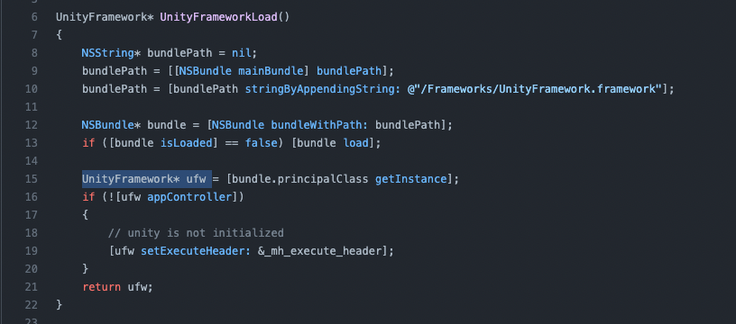 예시 블로그와 다르게 나는 UnityManager을 objc 코드로 구현했고, objective-c와 swift가 통신할 수 있게 브릿지를 구축해 swift 코드에서 사용할 수 있게 했다.